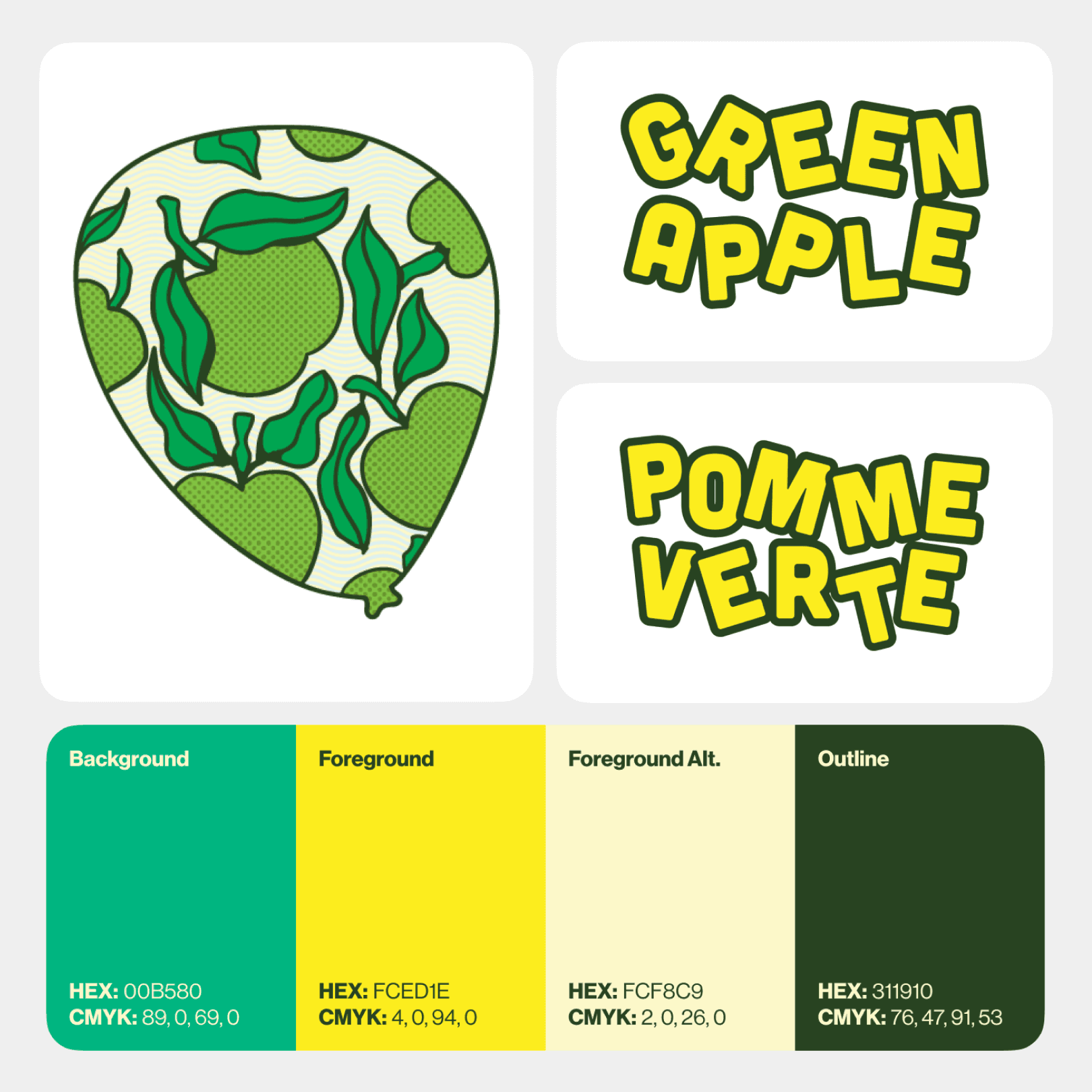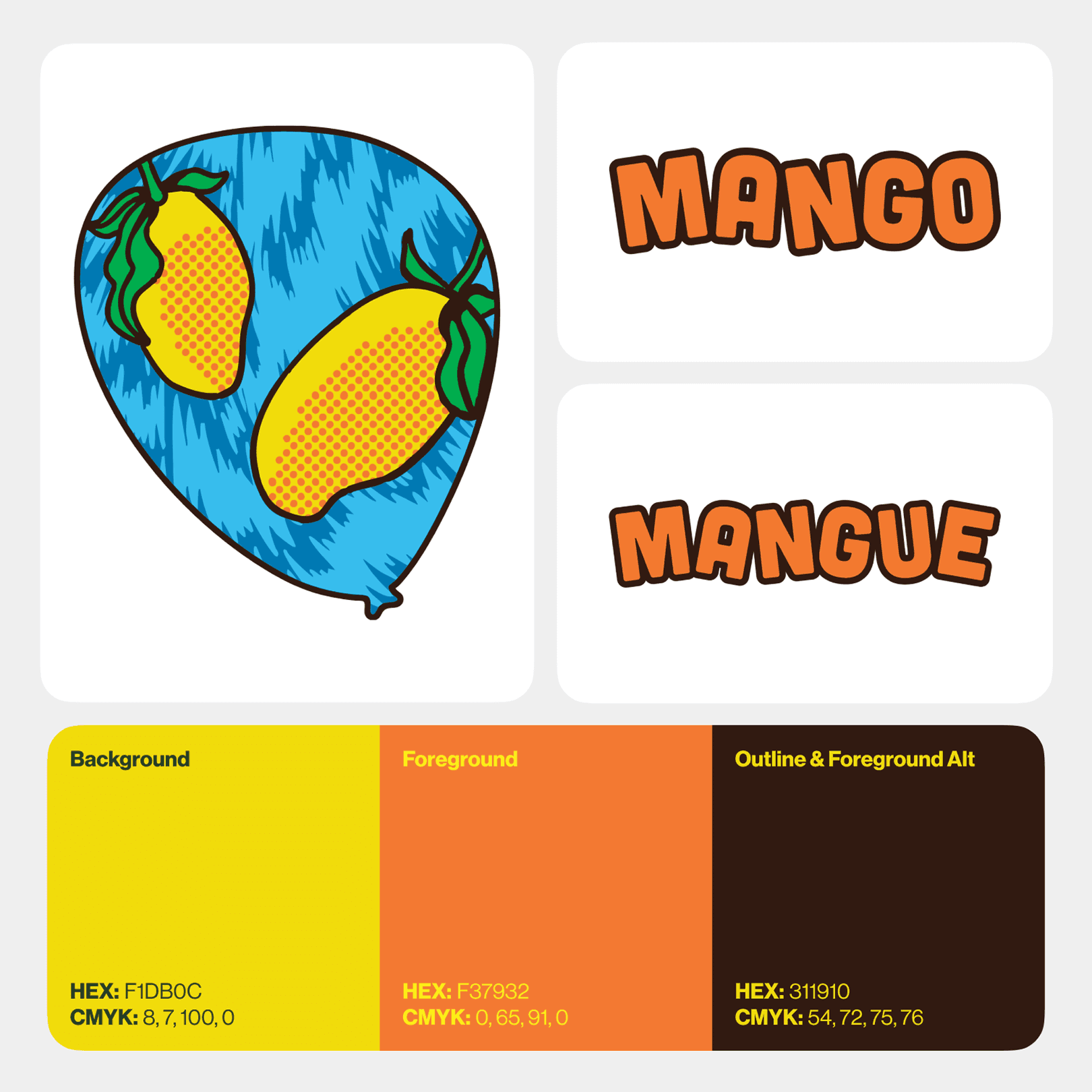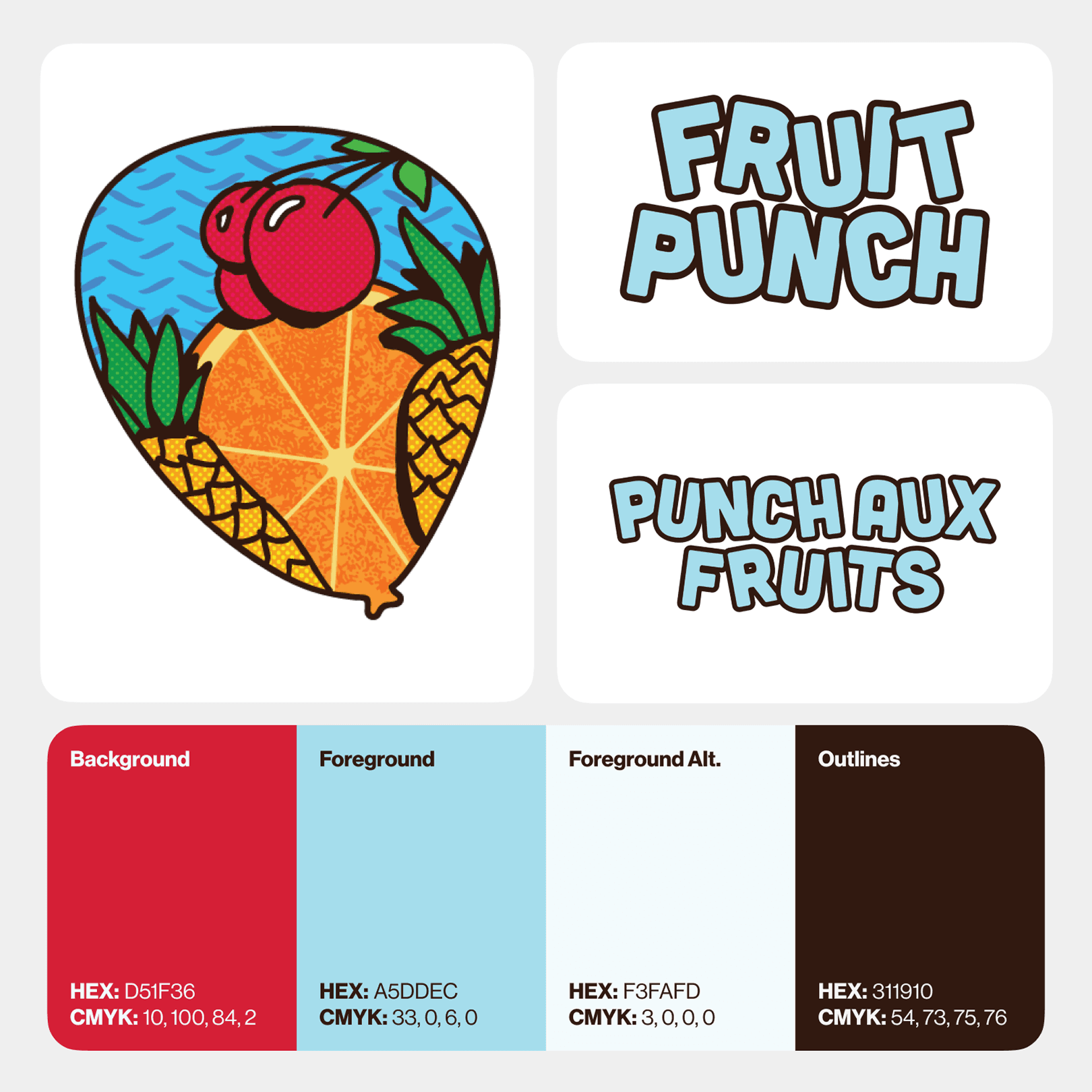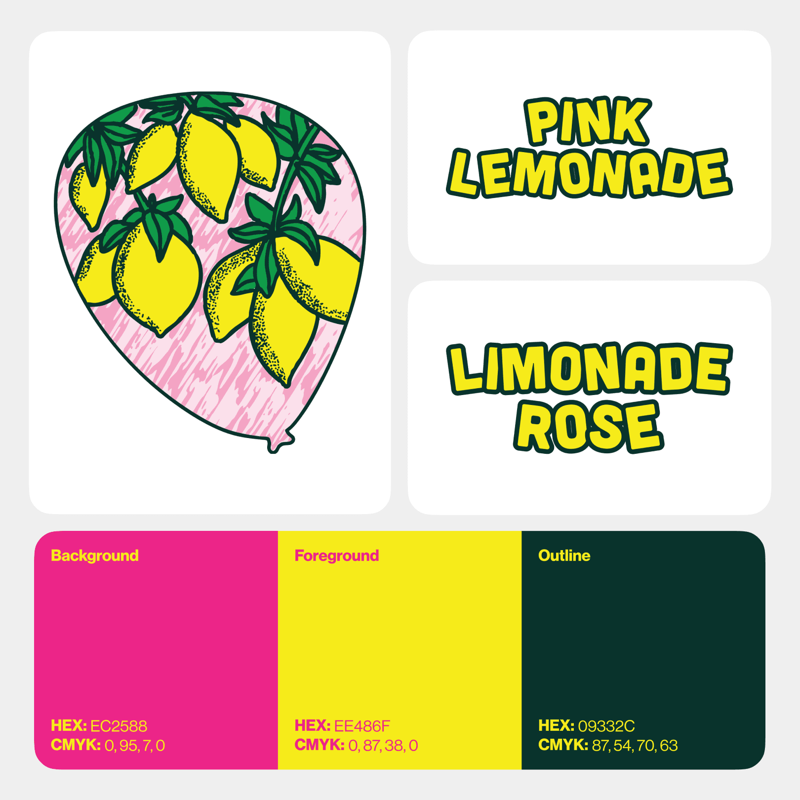 I knew from the get go that I wanted to incorporate the flavour into some sort of balloon imagery. Throughout the brand, I strived to evoke the feeling that summer break gave me as a kid, without directly referencing one type of design era to avoid nostalgia farming. I always like to have little easter eggs in my work, so to take it further I wrapped the balloon string around the cans and back into the logo so that the holder can follow it around to read more or just check out the design.